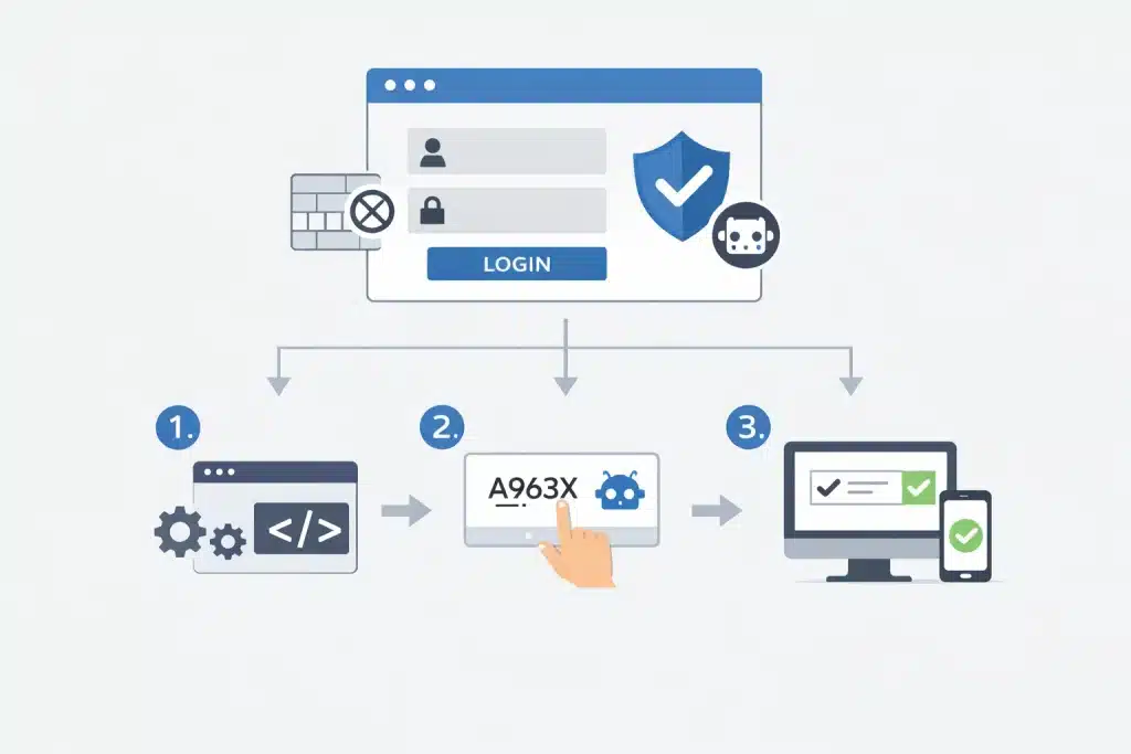 A typical process includes registering your site with a CAPTCHA provider, integrating the frontend script, verifying results on the backend, and monitoring performance after deployment.